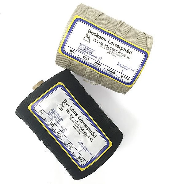 Bockens 8/5 pellavalanka (Mattvarp) on laadukas, vahva loimilanka 100 % pellavaa. Väreinä pellavabeige ja musta.