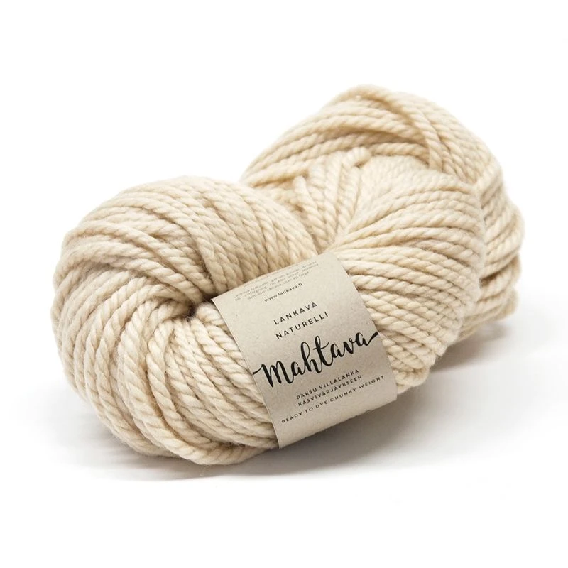 Lankava Naturelli Mahtava on paksu, kasvivärjäykseen soveltuva villalanka. Sopii muhkeisiin neuleisiin ja matonkudontaan. Lanka huopuu konepesussa, joten se sopii myös huovutettaviin tuotteisiin. Tutustu myös muihin Lankava Naturelli -tuoteperheen lankoihin.