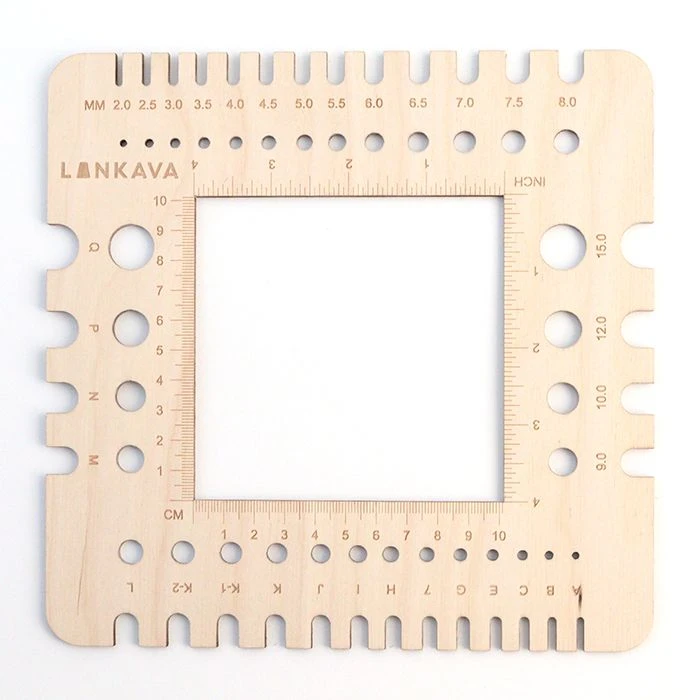 Vanerista laserleikattu monikäyttöinen käsityömitta.