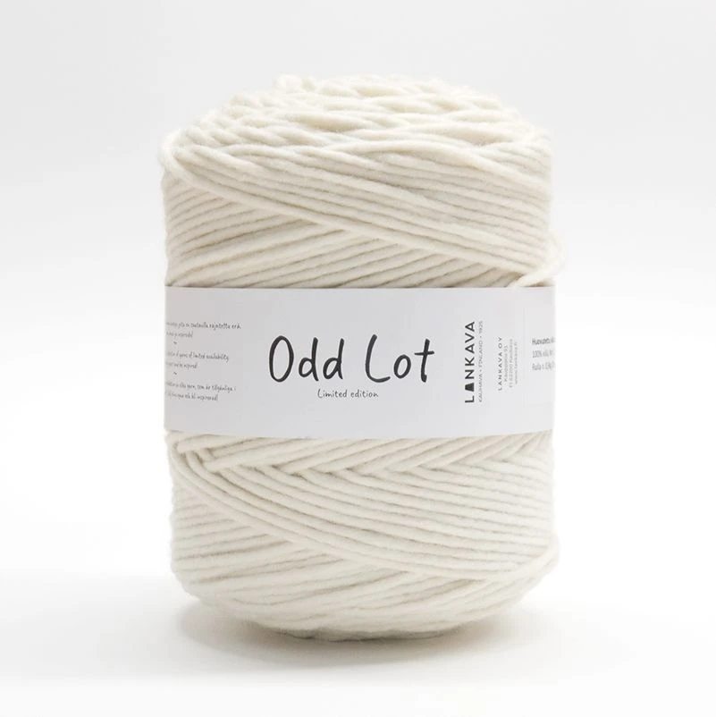 Odd lot huovutettu villalanka on luonnonvalkoinen (valkaisematon) huopamainen, paksu villalanka, joka sopii esim. mattolangaksi, kudonnaisiin ja sisustustuotteisiin.