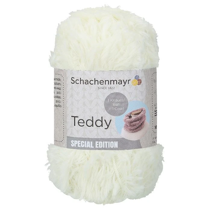 Pehmeä ja pörröinen Teddy-lanka sopii hyvin asusteisiin, sisustustuotteisiin tai esimerkiksi pehmoleluihin.