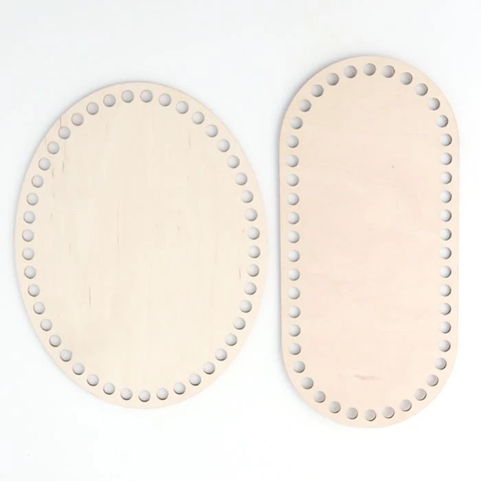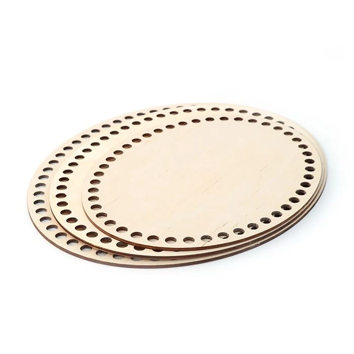 Käsittelemättömästä 3 mm puuvanerista laserleikattu korinpohja, reikien läpimitta 8mm. Eri kokoja ja malleja.
