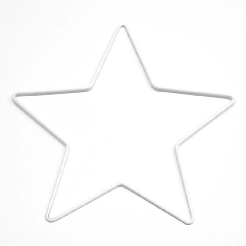 Valkoinen pinnoitettu metallitähti rungoksi tai kehikoksi ikkunakoristeille ja seinäkoristeille.